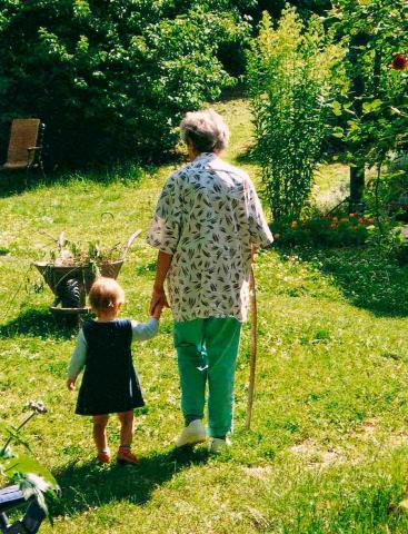 Kovách Erzsébet az első dédunokájával, Bibivel