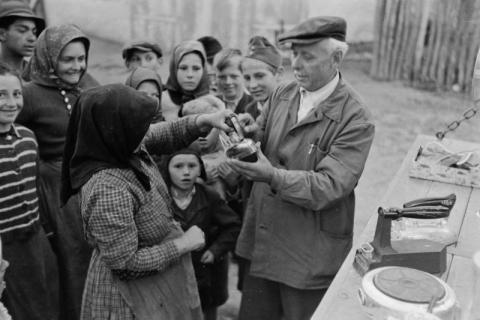 A népi demokrácia villanyt ad a falunak, elektromos háztartási eszközök bemutatója